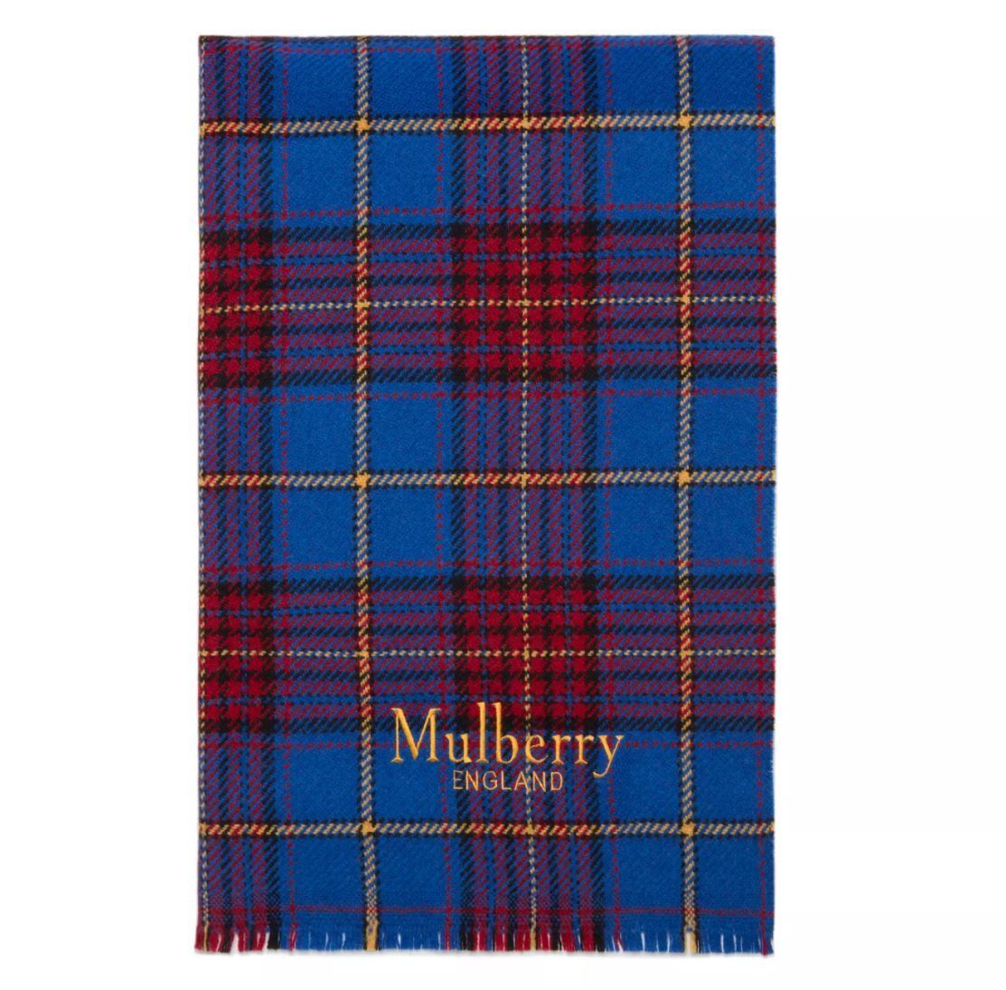 Mulberry(マルベリー)チェック&ストライプスカーフ Porcelain Blue Wool Blend