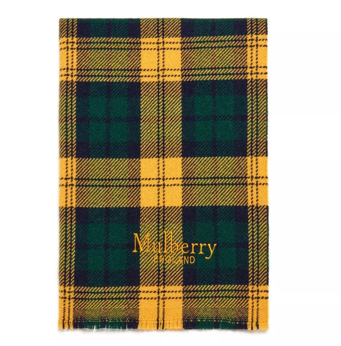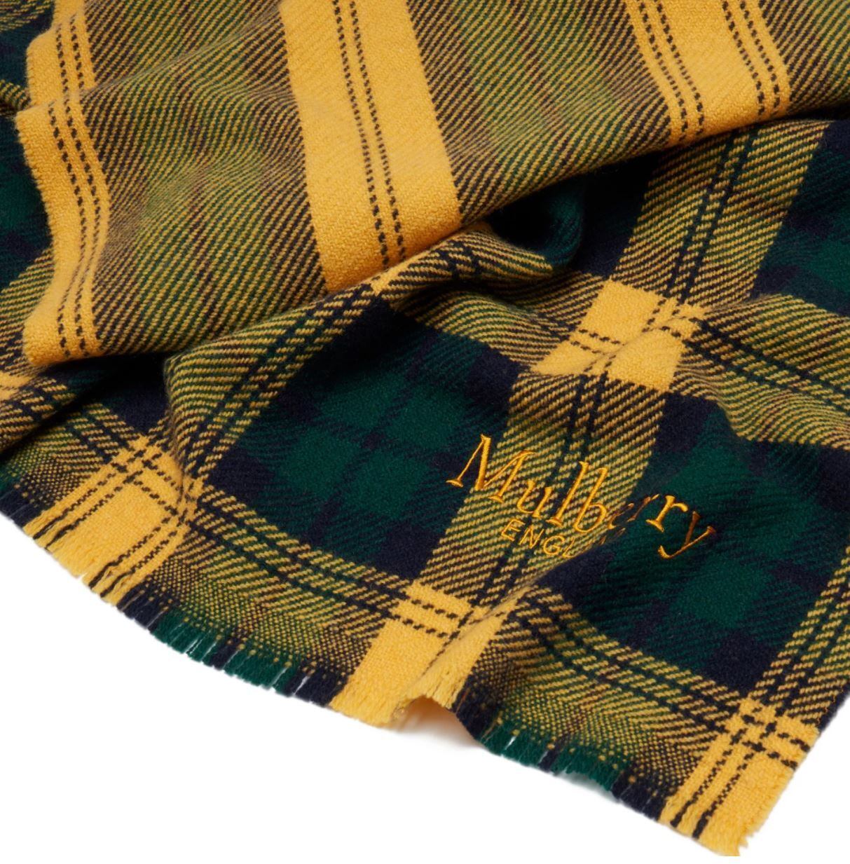Mulberry(マルベリー)チェック&ストライプスカーフ ディープアンバー&ミッドナイト
