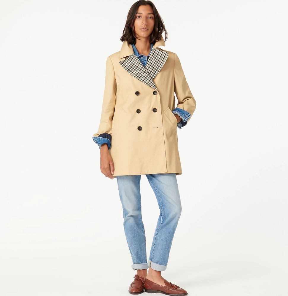 イタリアのネロゴリミルのウールを使用した、チェック柄のラペルが特徴的なクラシックなプリーツトレンチ。この秋の風の強い雨の日に、このスウィングシルエットを着て私たちを捕まえてください。J.Crewから綿製品を購入することで、Better Cotton Initiativeを通じて責任を持って栽培された綿をサポートできます。