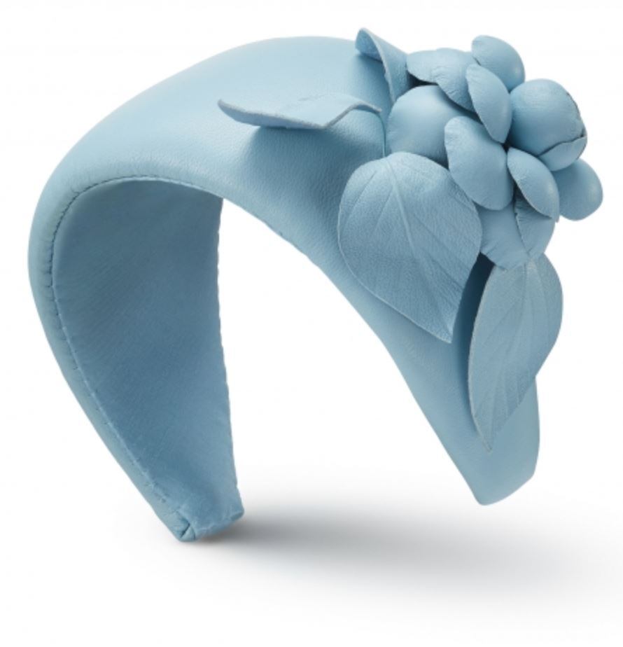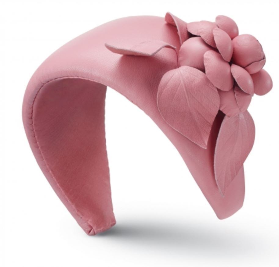カメリアのディテールが施されたナッパレザーのヘッドバンド。
