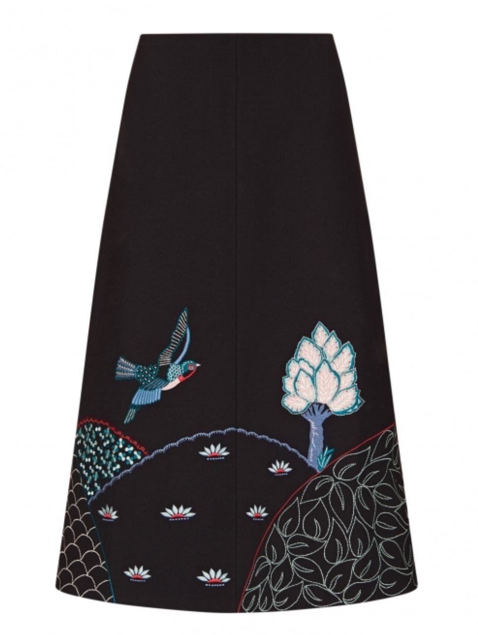 -ダブルフェイスフォレスト刺繍ミディスカート