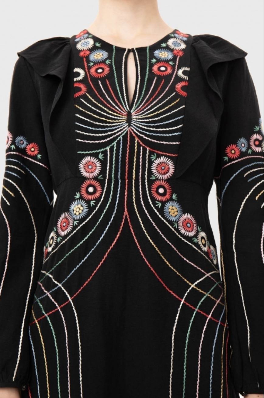 ヴィルシェンコ VILSHENKO JUDITH 花火刺繍フリルミディドレス 黒