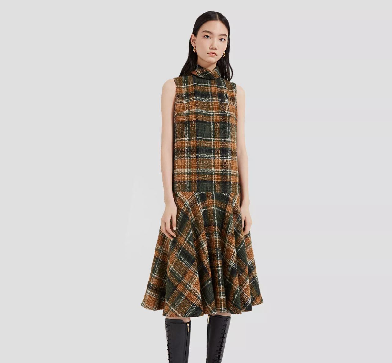 マルベリー Lexi ドロップウエストワンピース マルベリーグリーンツイードチェック