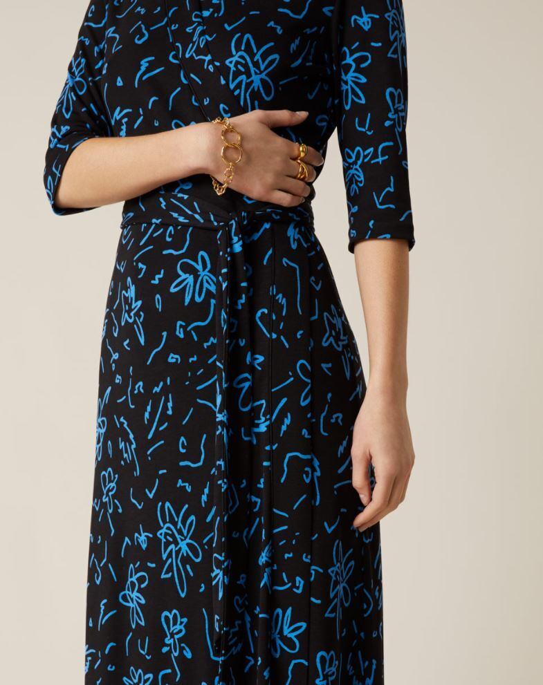 柔らかいビスコースのドレス。ラップ形状。はえ縄の形状。ウエストネクタイ。